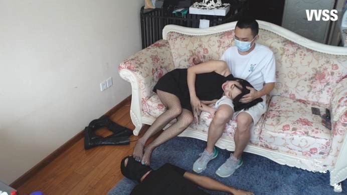【00后蕬小乃】双人骑乘女M,闻舔丝袜脚