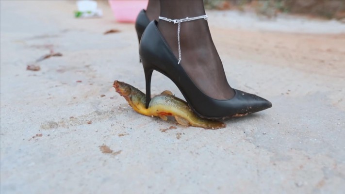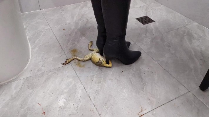 仙宁j官高跟皮靴踩爆3只牛蛙